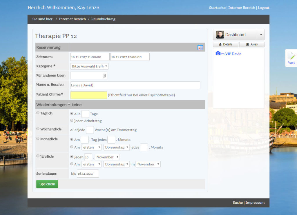 Erstellung einer Webseite mit einem Mitgliederbereich der einen Veranstaltungskalender, einen Downloadbereich und ein Raumplanungsmodul beinhaltet. Das Raumplanungsmodul ist von uns speziell für diesen Kunden programmiert worden. Neben der Webseite betreuen wir die gesamte EDV und leisten Support über die Supportsoftware TeamViewer.